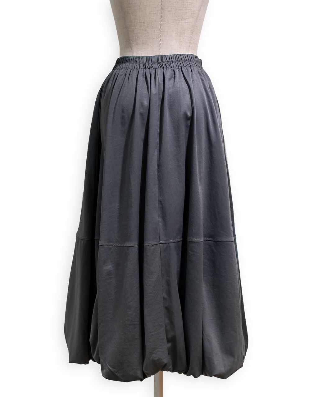 裾にかけてボーリューミーなバルーンスカート。生地の落ち感により広がりすぎません。洗いざらした様な風合いが特長のビンテージサテンを使用し、しっとり柔らかく扱い易い素材です。洗っても表情が変わりにくいイージーケアタイプです。