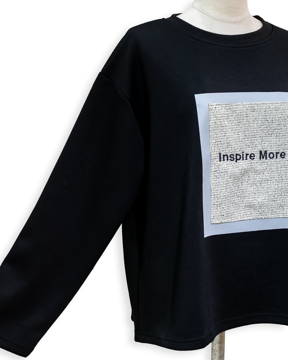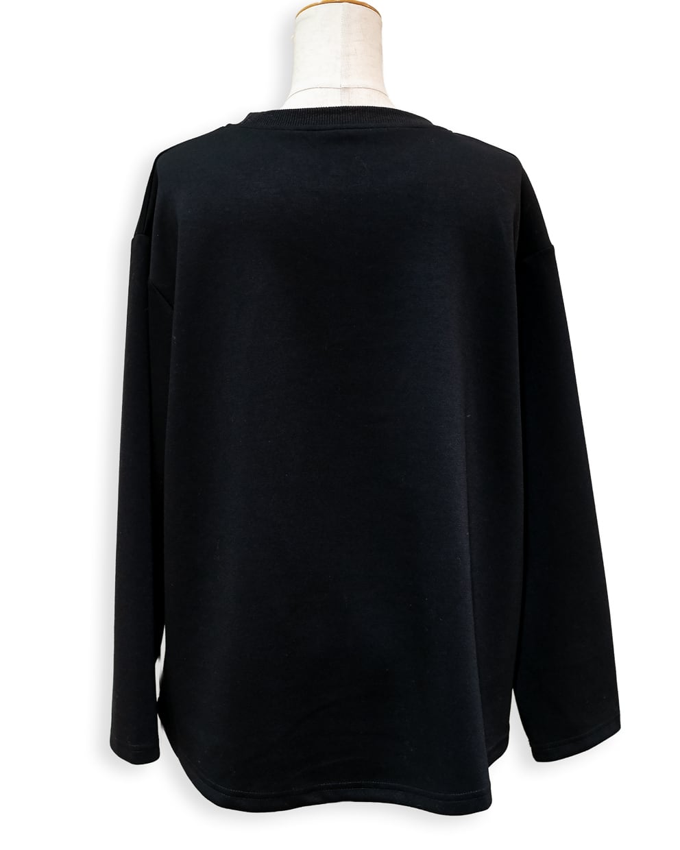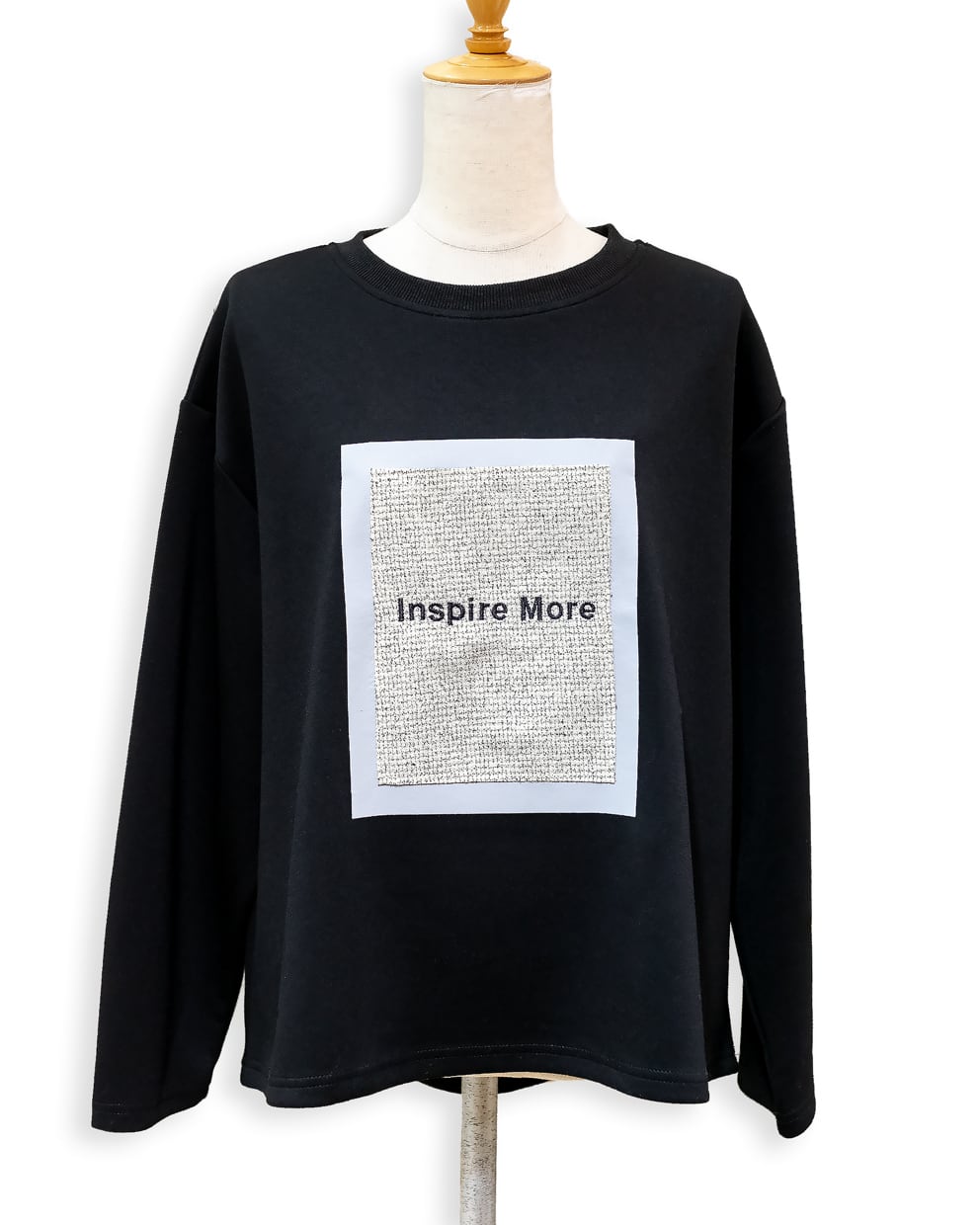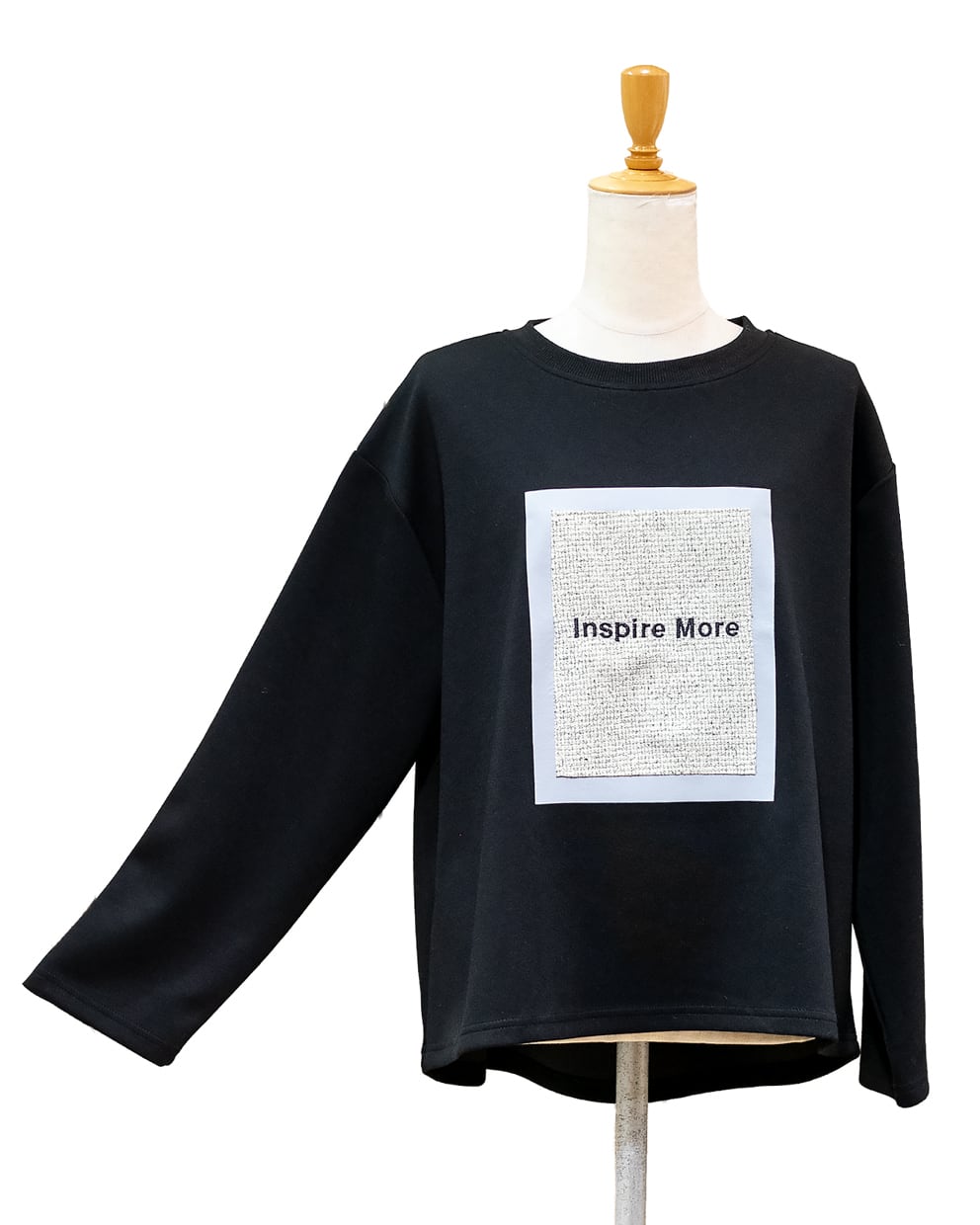 レタリング刺繍 ダンボールニット カットソー ゆったり ツイード【お家で洗える】