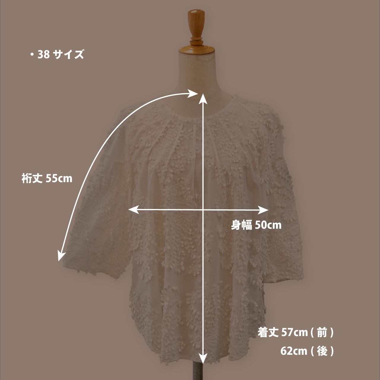 ・五分袖〜七分袖程度のワイドスリーブで、気になる二の腕もさりげなくカバーします。