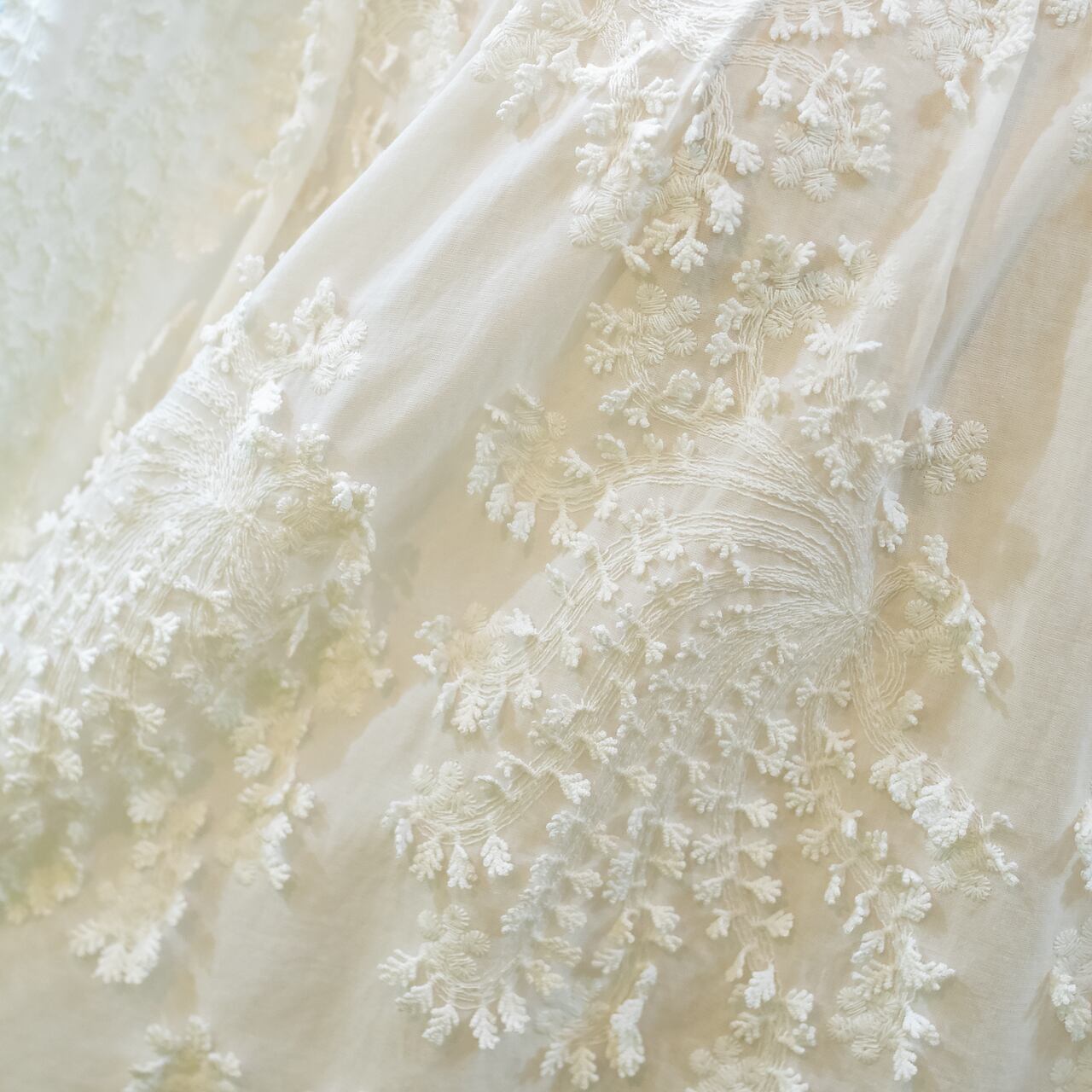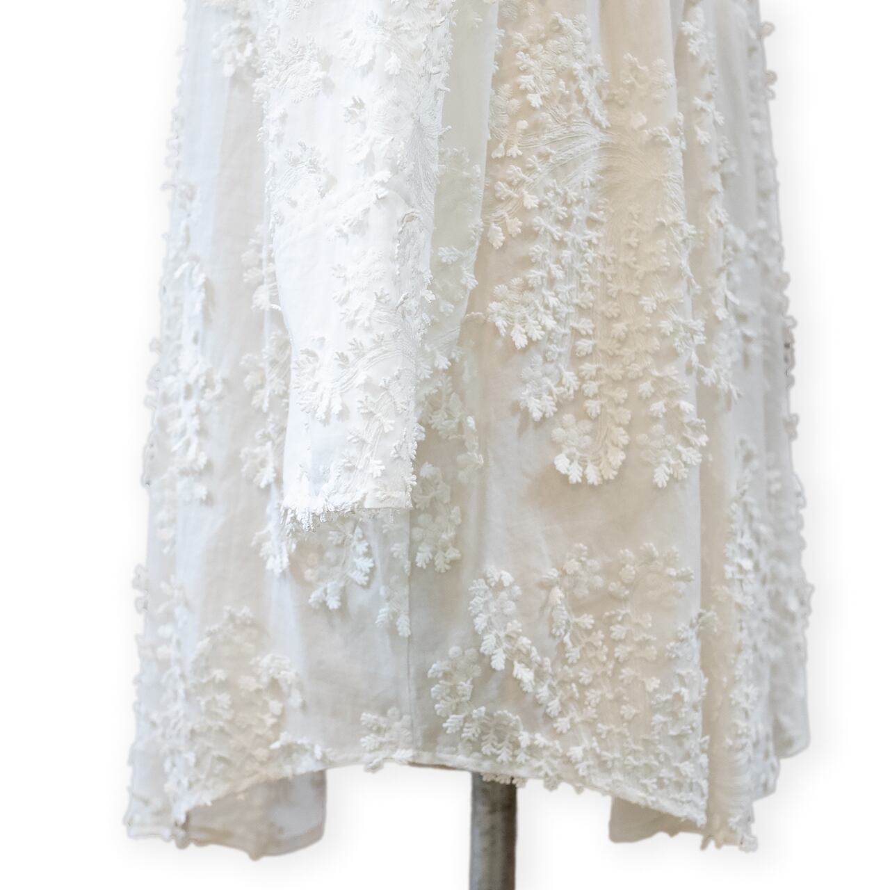 ・全体にあしらわれた立体感のある刺繍が、華やかで上品な雰囲気を演出します。