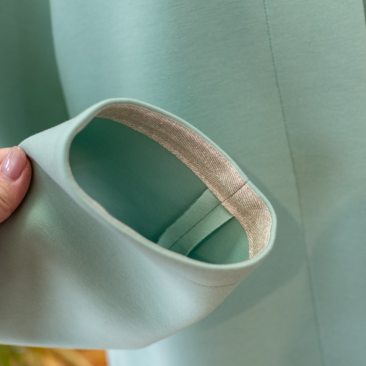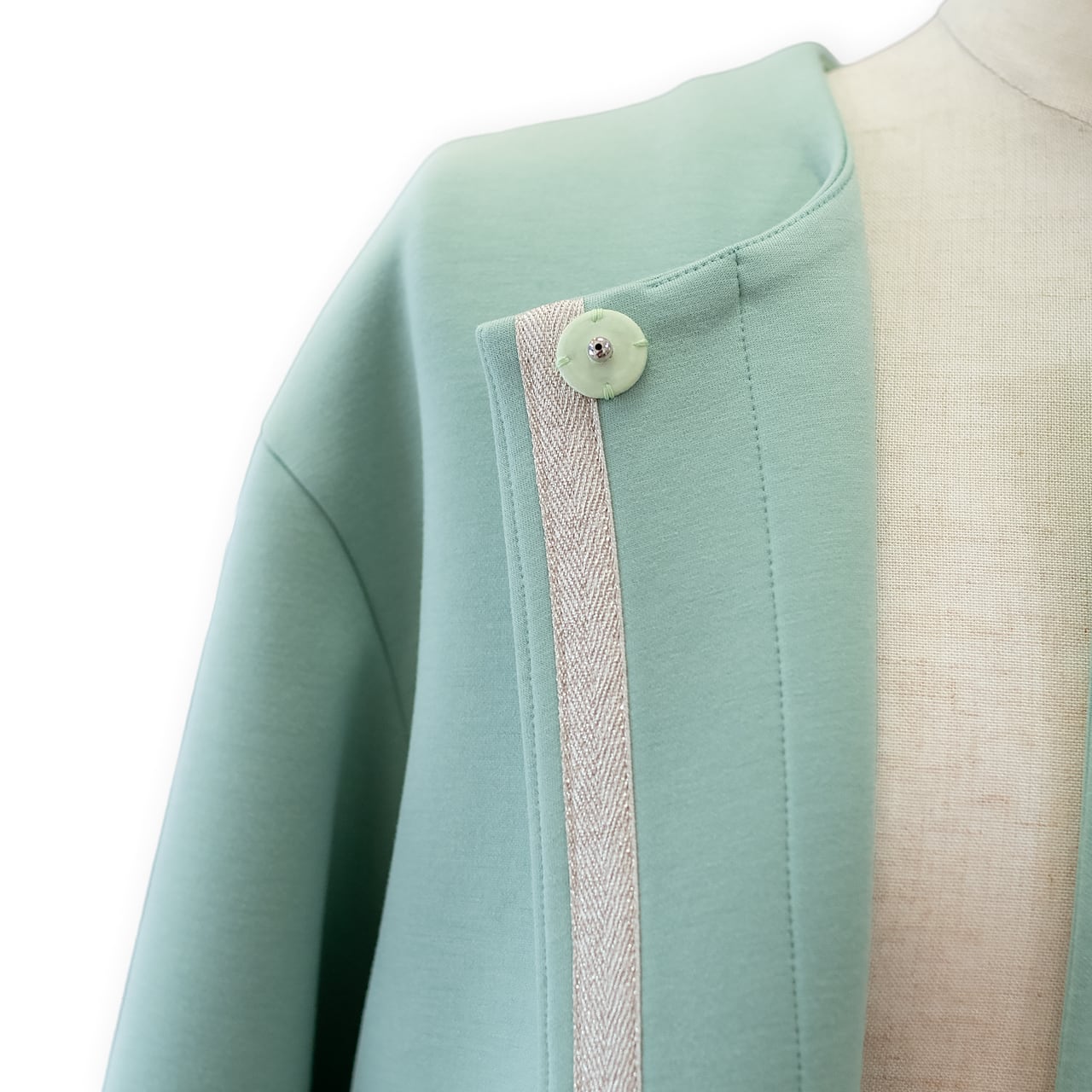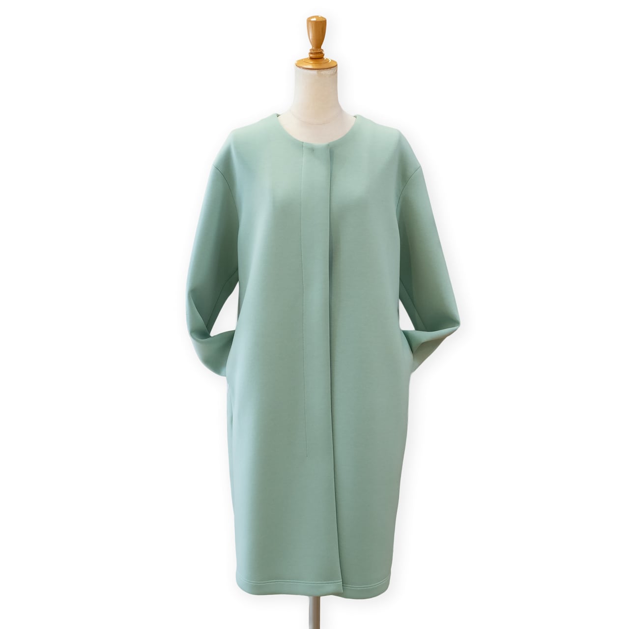 コートとカーディガンの中間的なアウター「コーディガン」タイプで、さっと羽織れる軽さときちんと感を両立しています。