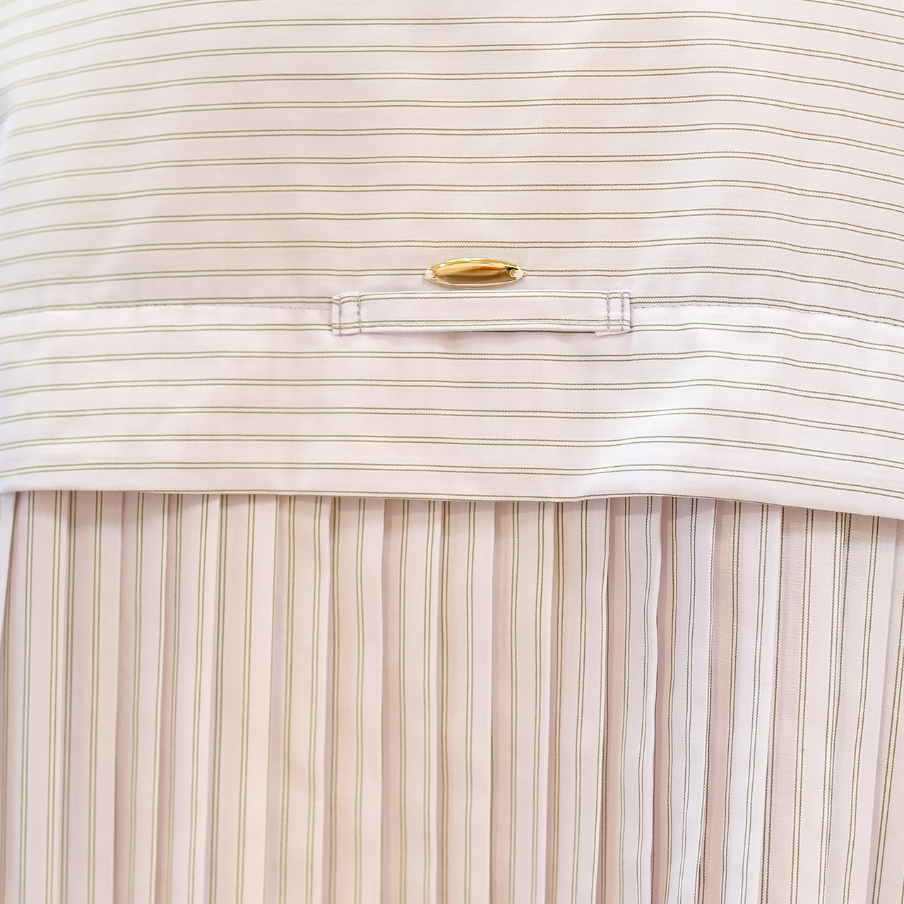 Lallia Muの代名詞でもあるプリーツをドッキングしたシャツシリーズ。
