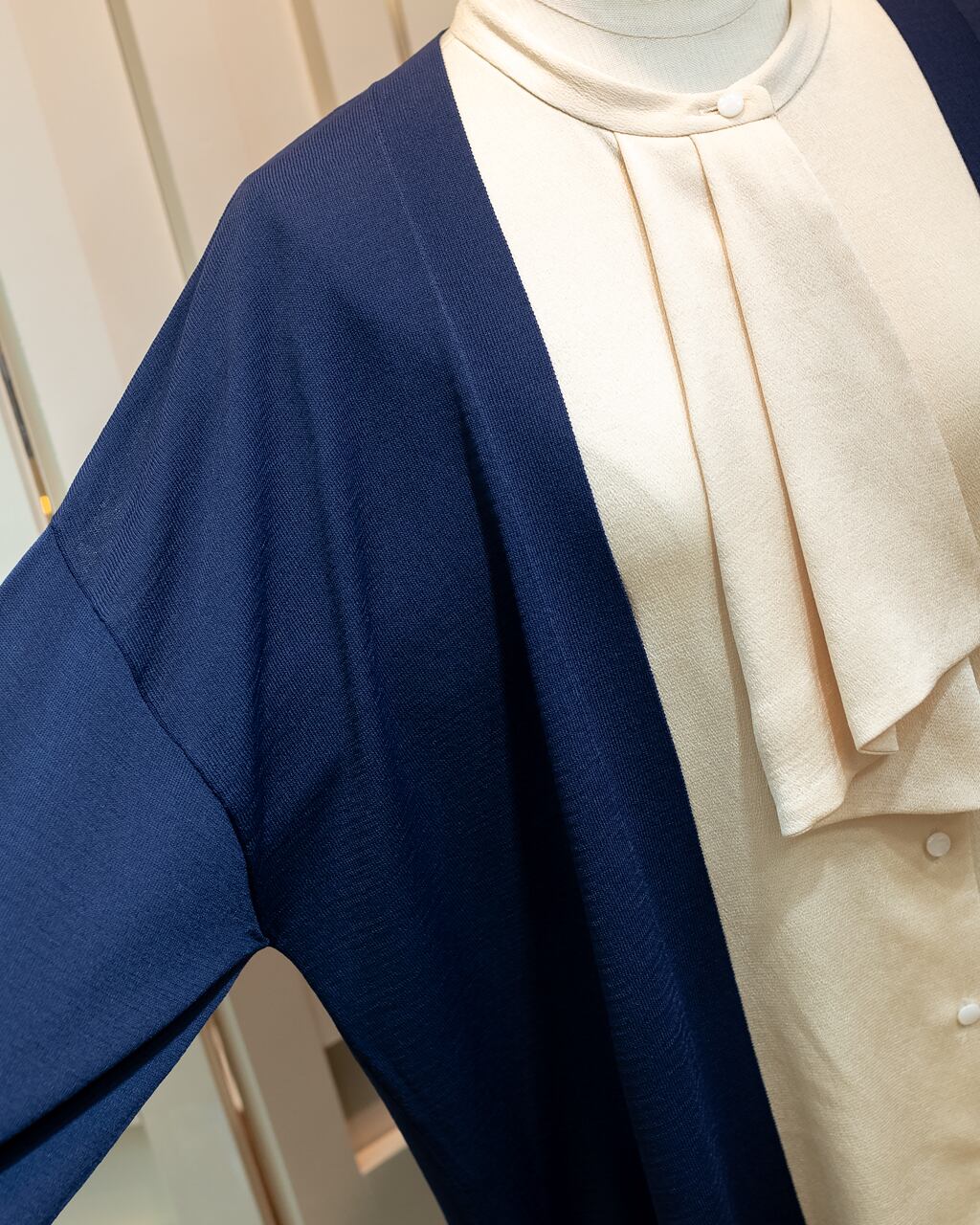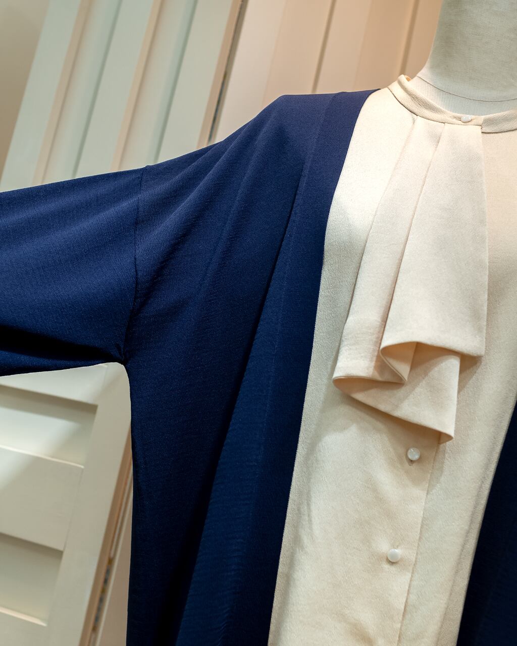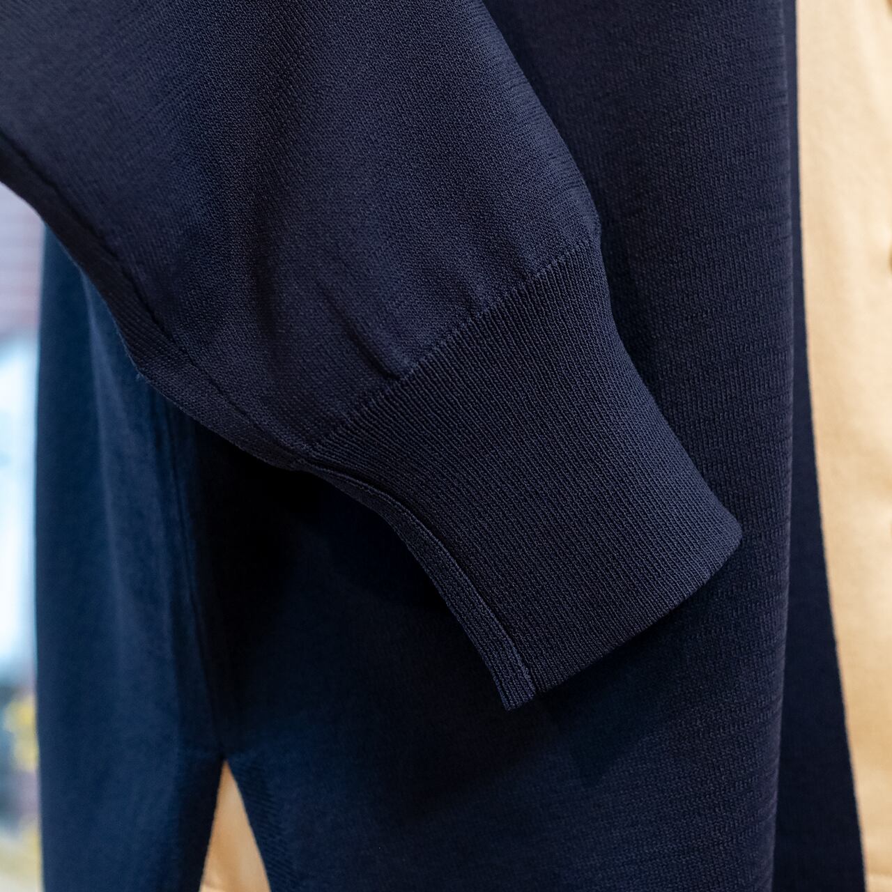 長めの袖リブが手首をキュッと引き締め、メリハリのあるシルエットに。腕まくりをしてもズレ落ちにくく、こなれた「抜け感」を簡単に作れます。